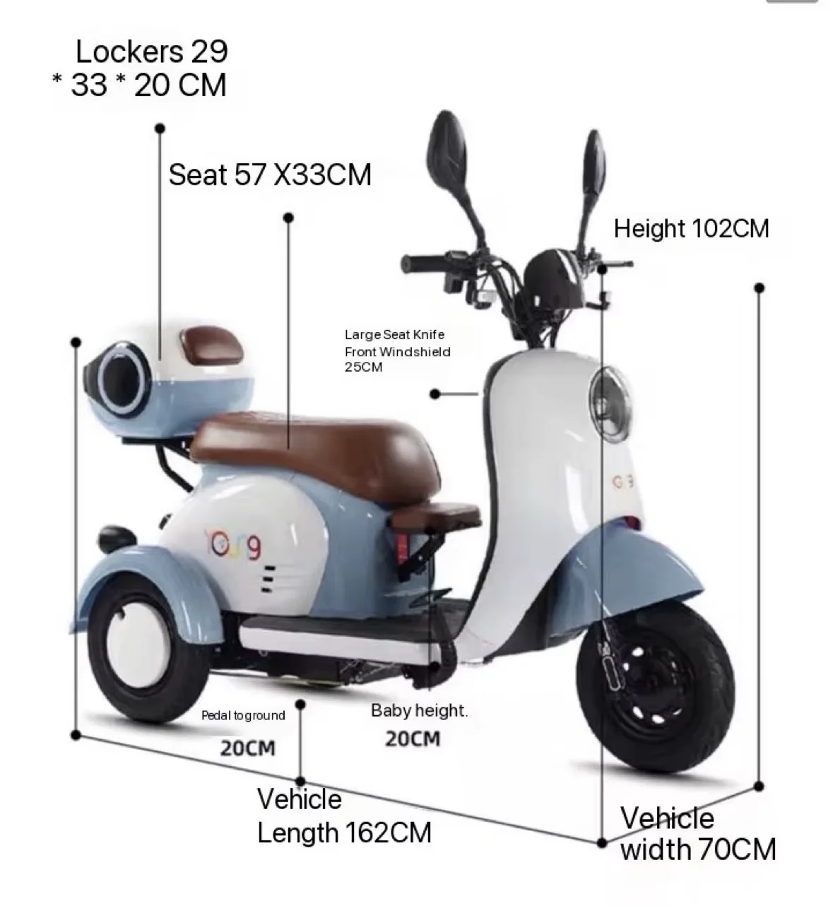 600W Powerful Fashion Electric Tricycle Two Seats Motorcycle