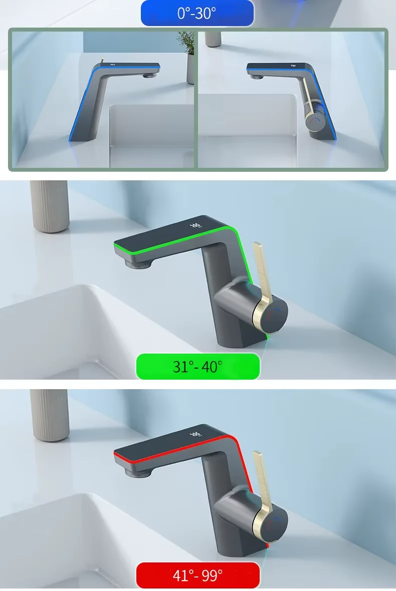 Bathroom Digital Display Temperature Display Single Handle Taps Hot/Cold Water Single Mixers Basin Faucet