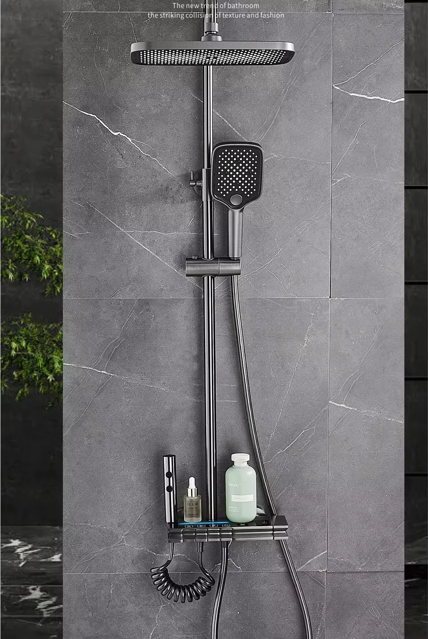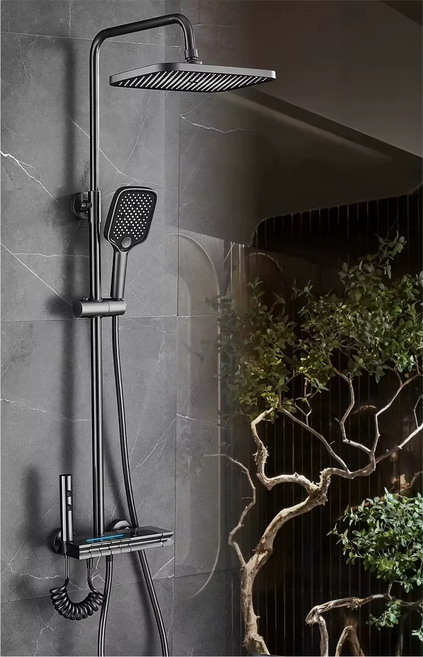 Brass Bathroom Digital Waterfall Wall Mounted Bathroom Shower System Set Rain Piano Smart Massage Shower Set With Thermostat