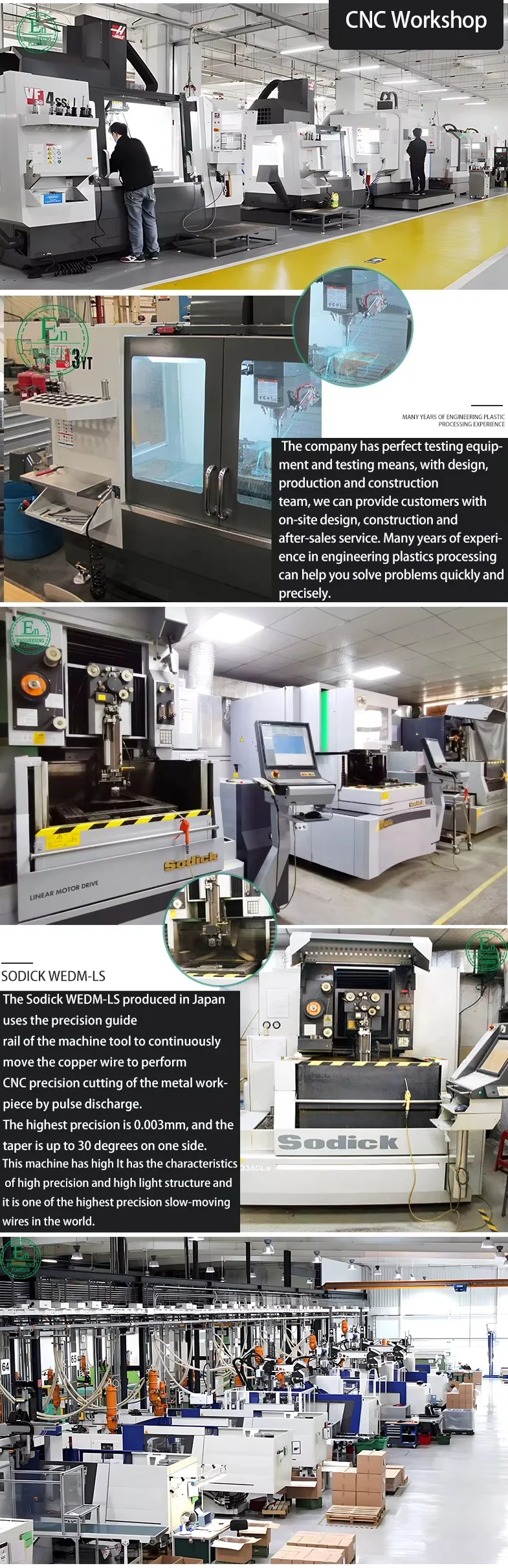 Manufacturing Equipments | Guangdong Engineering plastics company has OWM:Imported CNC equipment, EDM machines, Imported mirror wire cutting machines, High-speed precision engraving machines, Laser cutting machines, Sodick slow threading machines, Precision grinders, Plastic injection molding machines,Double color injection machines,etc | |||