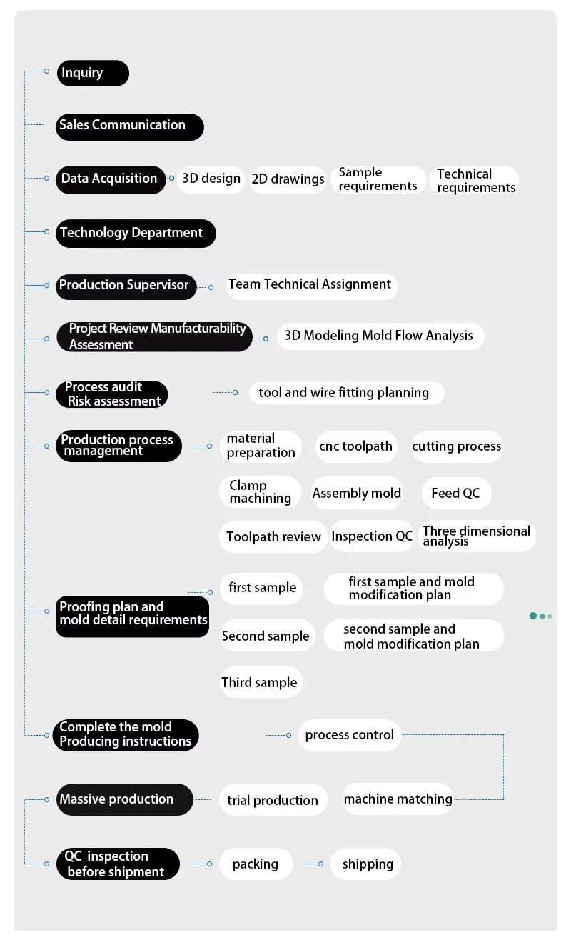 Reliable mold expert 15+ years' experience, Cooperated with many world famous brands for many years, Specialize in large and complex injection mold making, One-stop service from design to production.The factory covers an area of 10,000 square meters Production equipment has the original American imported Haas CNC machining center, wire-electrode cutting, electrical discharge machine,Perforating machine, injection molding machine, CNC milling machine CNC hobbing machine, CNC lathe, CNC milling machine CNC lathe, CNC milling machine, grinding machine and other machinery and equipment.