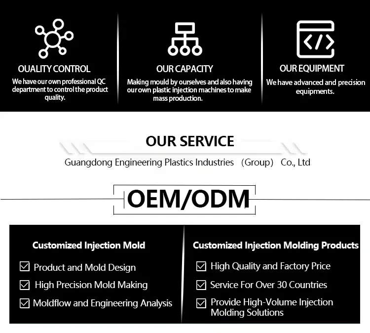 Guangdong Engineering Plastics Industries Co., Ltd! We have the professional engineer teams and sales teams, and we have technology and experiences in engineering plastic industry for morethan 15 years! Our company is located in Huangpu District, Guangzhou City, China, where the logistics is developed! With the rich experiences and technology for manufacture, design,research and development ability, support personalized customization. We have full set of high efficiency producing equipment and advanced numerical control machines, such as: molding injection machines, CNC molding manufacture machines, fine carving machines, Horizontal lathes, milling machines. We can customize all kinds of Engineering plastics products according to our customers’drawings or samples.