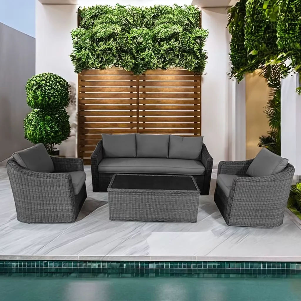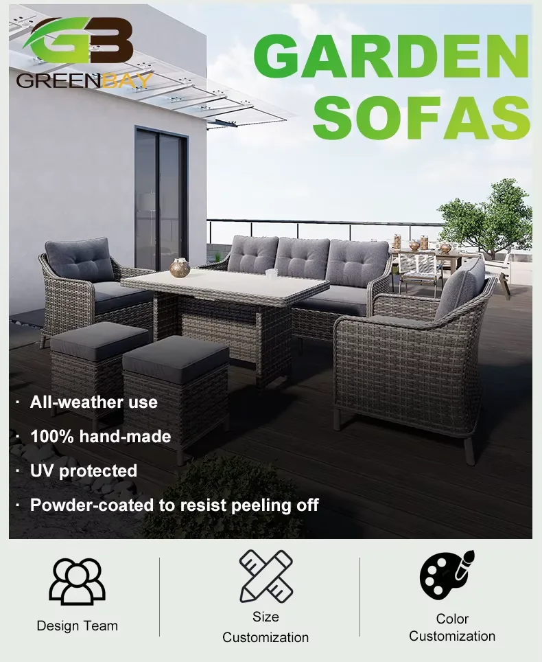 Classic Rattan and Wicker Furniture Set Modern Aluminum Metal Garden Sofa and Table for Hotel Exterior Villa Outdoor Use