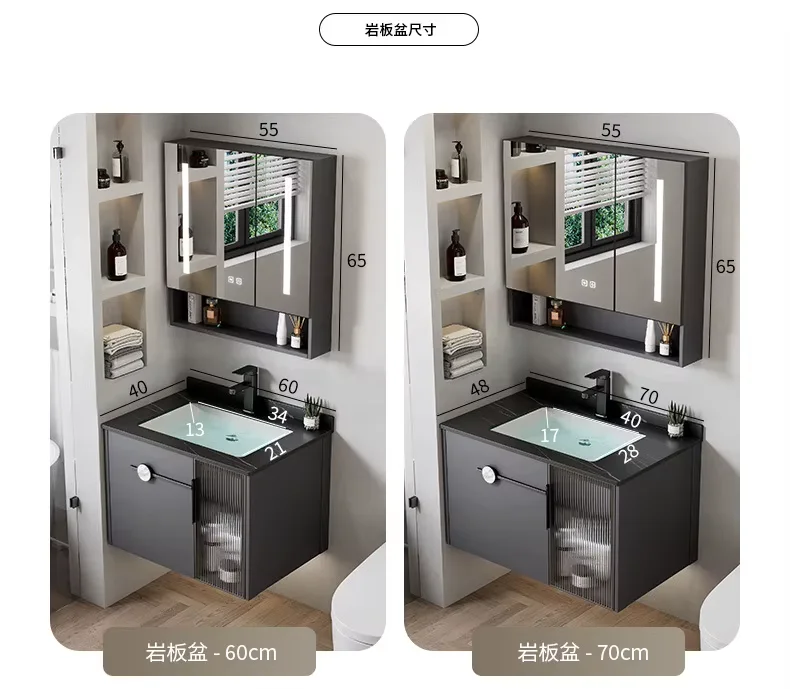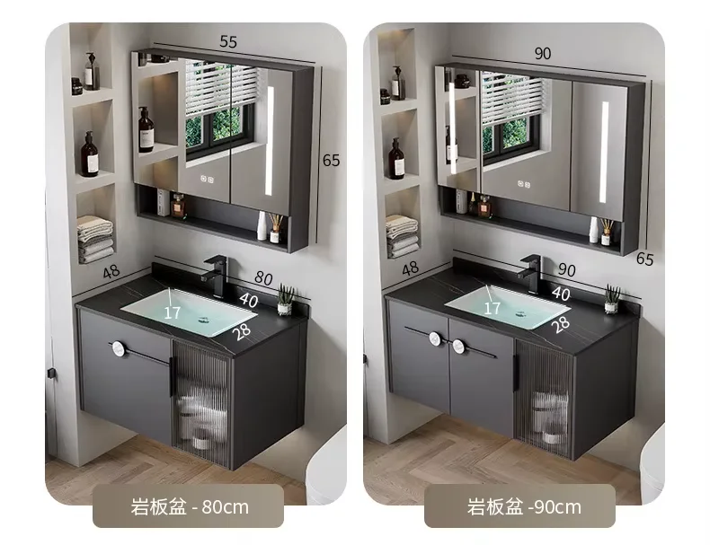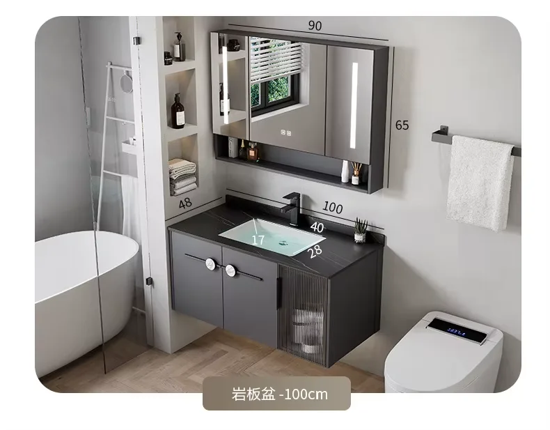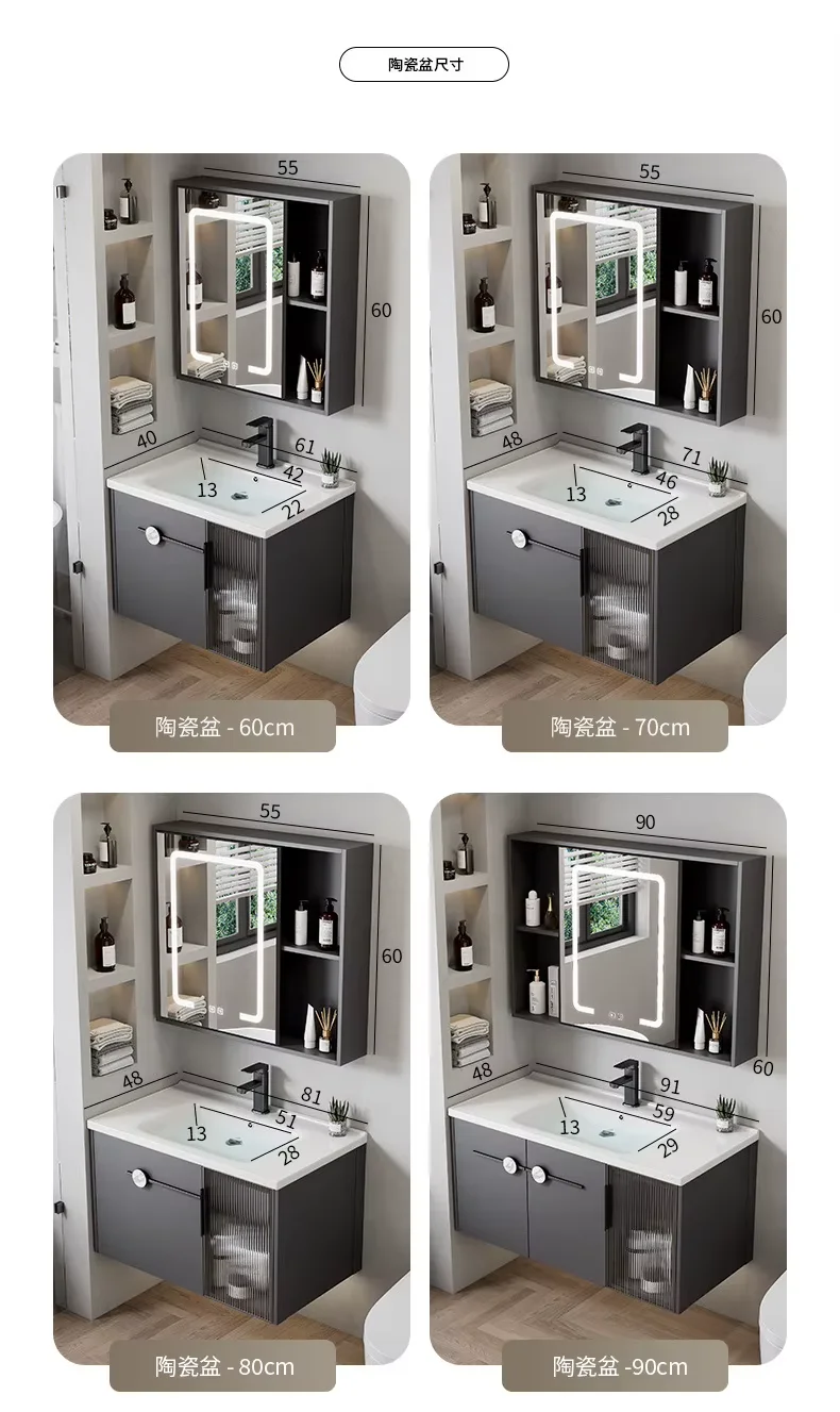 Custom High Quality Modern Design Aluminum Bathroom Cabinet with LED Mirror Wall Mounted for Hotel Use