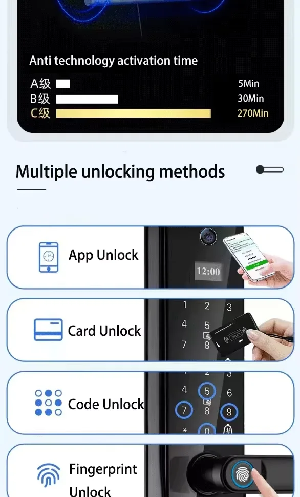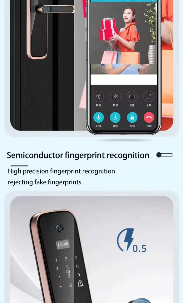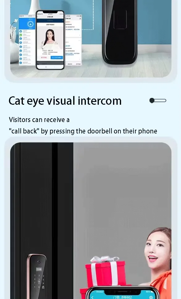 Custom Red Antique Copper aluminum tuya wifi biometric smart screen door locks with cat eye