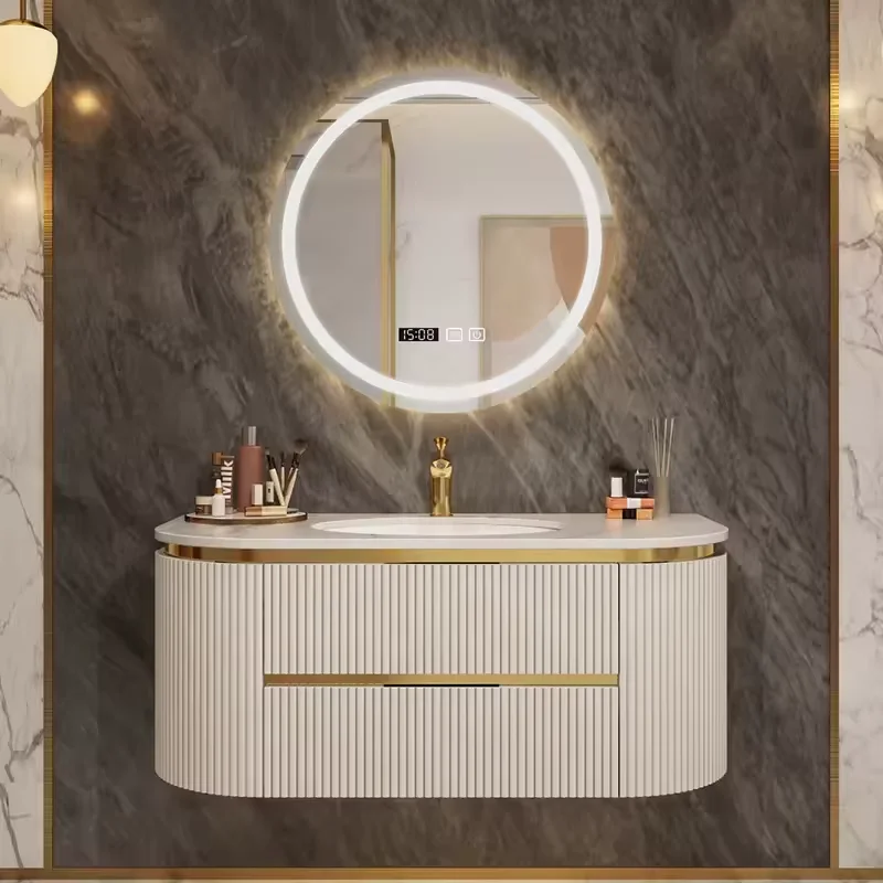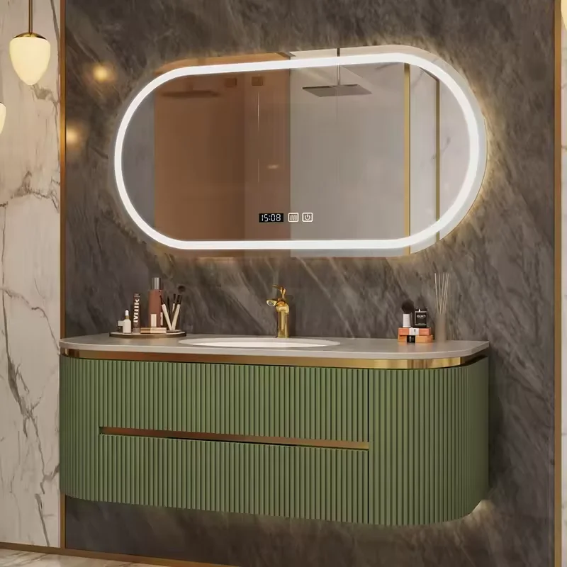 1.Customized solid wood bathroom vanity in a variety of colors and shapes, with an elegant and delicate arc appearance. 2.This vanity + LED mirror cabinet set can be customised for OEM/ODM processing with flexible and powerful design. 3.Made from eco-friendly materials, this set offers a durable, sustainable solution for your bathroom needs. 4.With the help of this vanity set, you can enjoy DIY fun and personalise your space easily.Product Type | Bathroom Cabinet Combination |