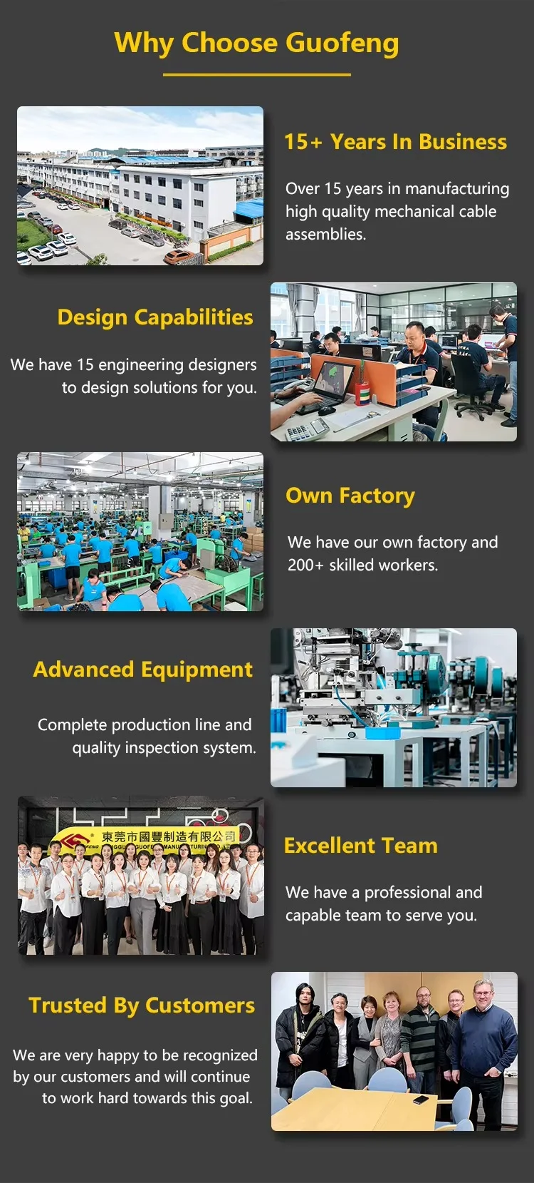 Of course, we have to know your application firstly and a number of factors have to be considered, such as work load, safety abrasion, environment, cycle life, flexibility, cost, When we design the Throttle & Control cables.