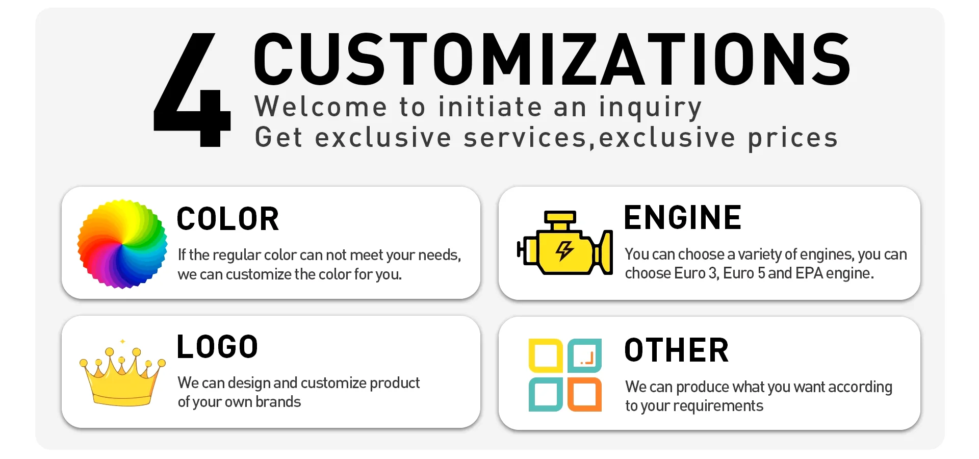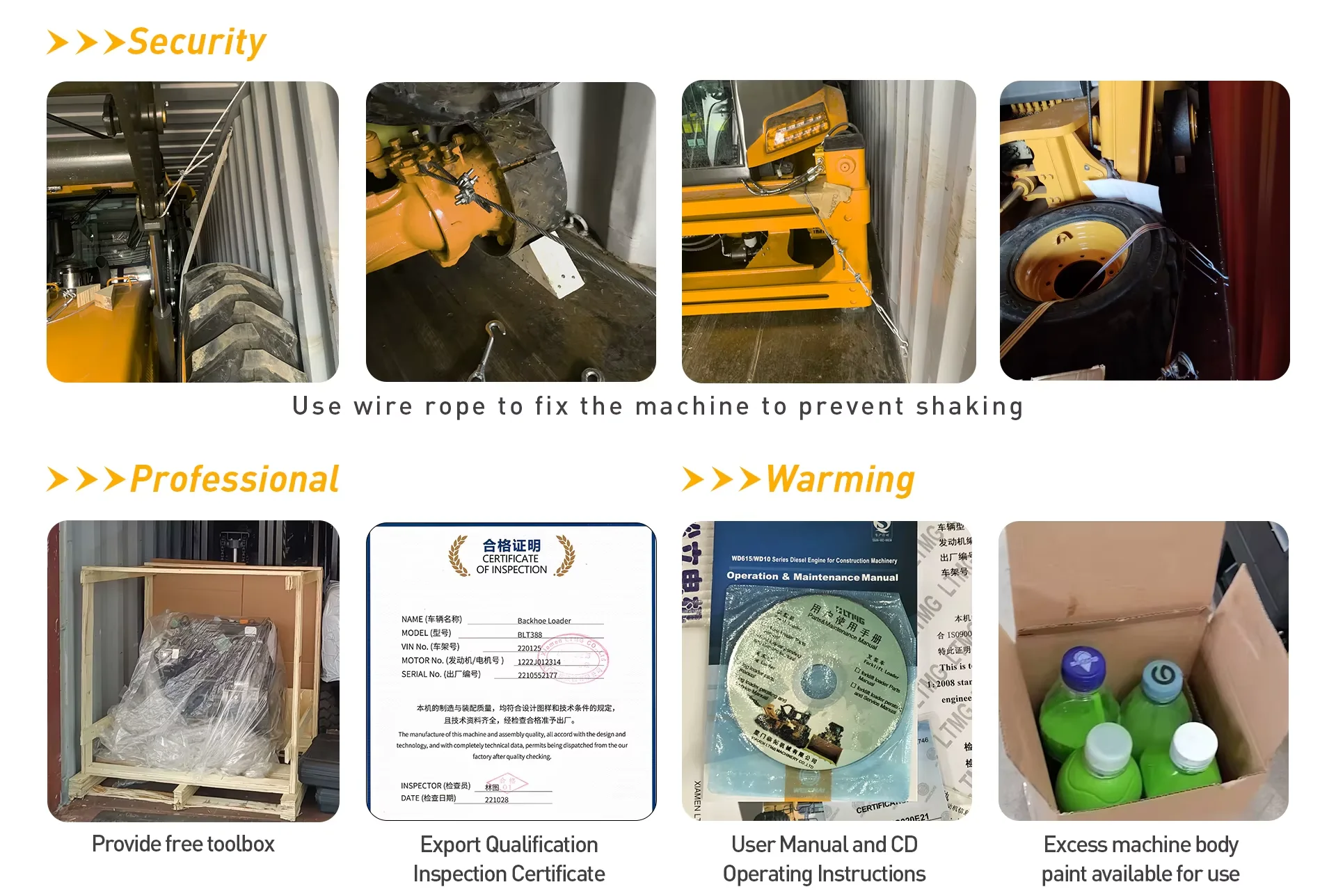1. Why choose us? As a manufacturer, LTMG industrial is committed to offer not only products with high quality and performance and competitive price, but also in-time delivery and comprehensive 7/24 after-sale services. 2. What is the product range of our factory ? LTMG industrial is a large-scale machinery manufacturing enterprise primarily specializes in supplying wheel loaders,skid steer loader,forklift trucks,excavator and related attachments. We can also customize non-standard products according to customer's requirements. 3. What payment terms can we accept? Normally 30% deposit is required in advance, 70% balance shall be settled before shipment. And 100% irrevocable L/C at sight with the terms we agreed can also be accepted. 4. What Certificates do we have? All products meet with the ISO9001 Quality System and have acquired CE certificate. EPA approval will be available if needed. 5.How about our delivery time? Usually it will take 15 to 30 days after receiving your deposit. About standard products, we always have in stock and can deliver immediately. But customized products will take more time, depending on the requirements of your order. 6. Can we provide OEM service? LTMG industrial can provide customized products according to customers' requirements, both OEM and ODM are acceptable.