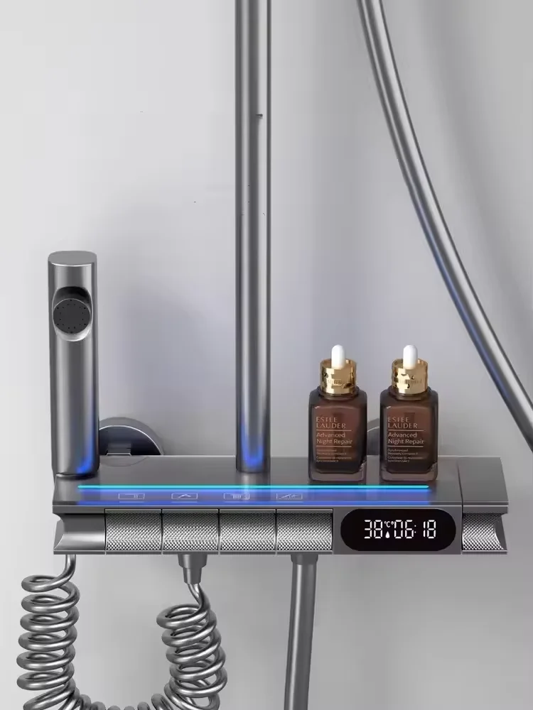 Luxury Bathroom Brass Rain Shower Set Wall Mounted Thermostat Intelligent Digital Display with Light Shower Set