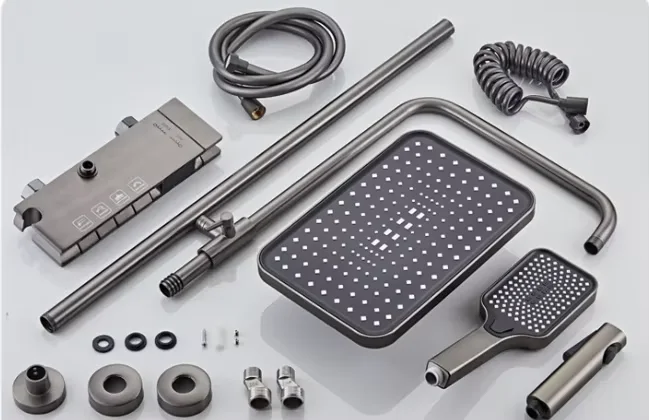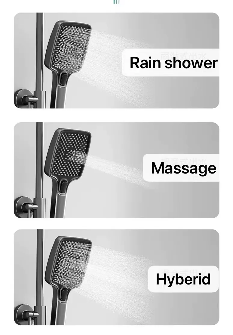 · 1.CUTTING-EDGE DESIGN: The hot and cold water wall mounted bathroom shower set features a modern and stylish design that can add a stylish touch to any bathroom in your flat, villa or hotel. 2.DURABLE METAL CONSTRUCTION: This premium shower set is made of metal to ensure durability. It is also corrosion resistant, making it a great choice for any environment. 3.FOUR FUNCTIONAL SHOWER EXPERIENCES: This shower kit offers a variety of shower experiences including rain, soft, jet and massage, allowing you to customise your shower to your liking. 4.EASY INSTALLATION: As a wall-mounted shower kit, the installation is simple and straightforward, saving time and effort, and is suitable for all kinds of bathroom projects. 5.PREMIUM LUXURY: Enjoy a spa-like experience with the Hot and Cold Water Bathroom Shower Set. Designed for sophistication and comfort, this luxury shower set will enhance your bathroom experience.Material | Brass |