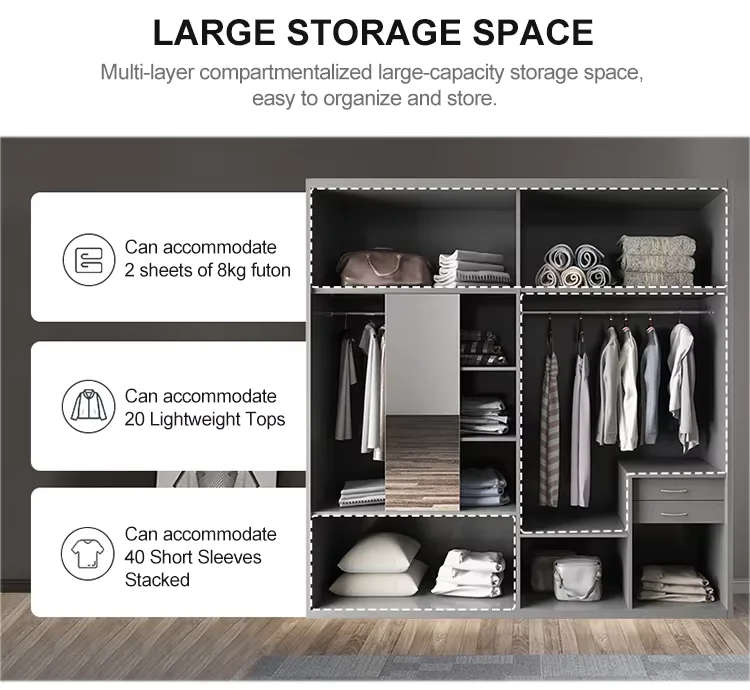 Modern Simple Wardrobe Closet Combination Designs Bedroom Furniture Cupbord Storage Cabinet Sliding Door Wardrobe