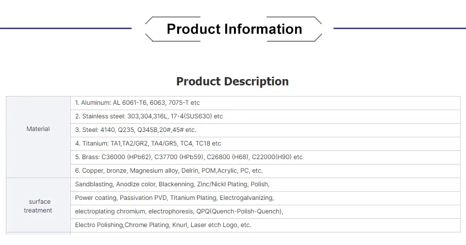 Surface treatment | Sandblasting,Brushed,Anodizing,Silk-screen printing,Laser engraving,Electrophoresis,Galvanizing,Galvanized nickel-plating,etc | |||||