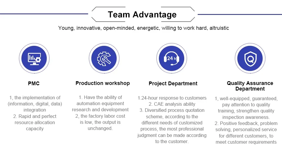 Testing Equipment | 3D blue light scanner,Vickers hardness tester,Roughness meter,Rockwell hardness tester,Coordinate measuring | |||||
