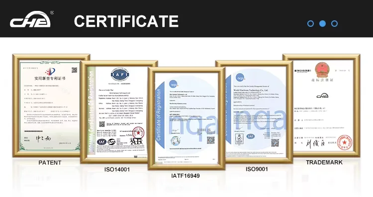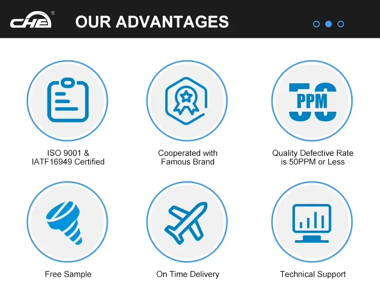 Our Advantages 1, Quality defective rate is 50PPM.2, ISO 9001 & IATF16949 certified. 3, 15+ years manufacturing experience.4, Have rich experience to cooperated with famous brand , like Porsche ,Tesla,Volvo,Valeo ,Paccar...5, Providing certificate such as PPAP Level3 , RoHS,MSDS,IMDS etc.