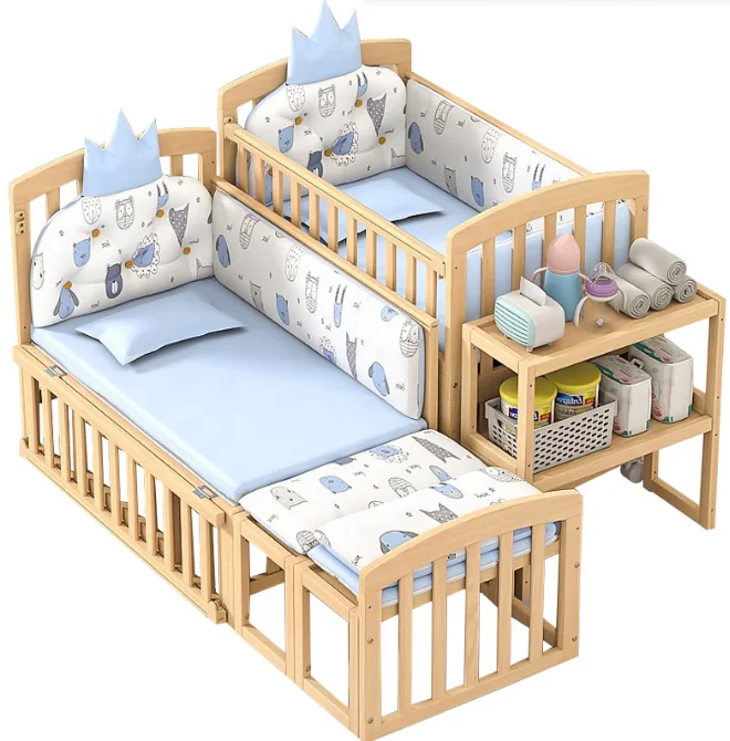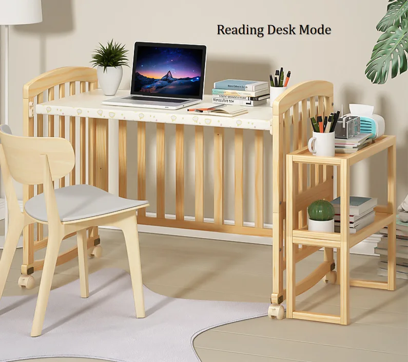 SeaMind Convertible Woodenbaby Cot Crib Baby Bed 5 in 1 Multi-functional Crib Closet and Store Space Extended Kid Bed 0-12 Years