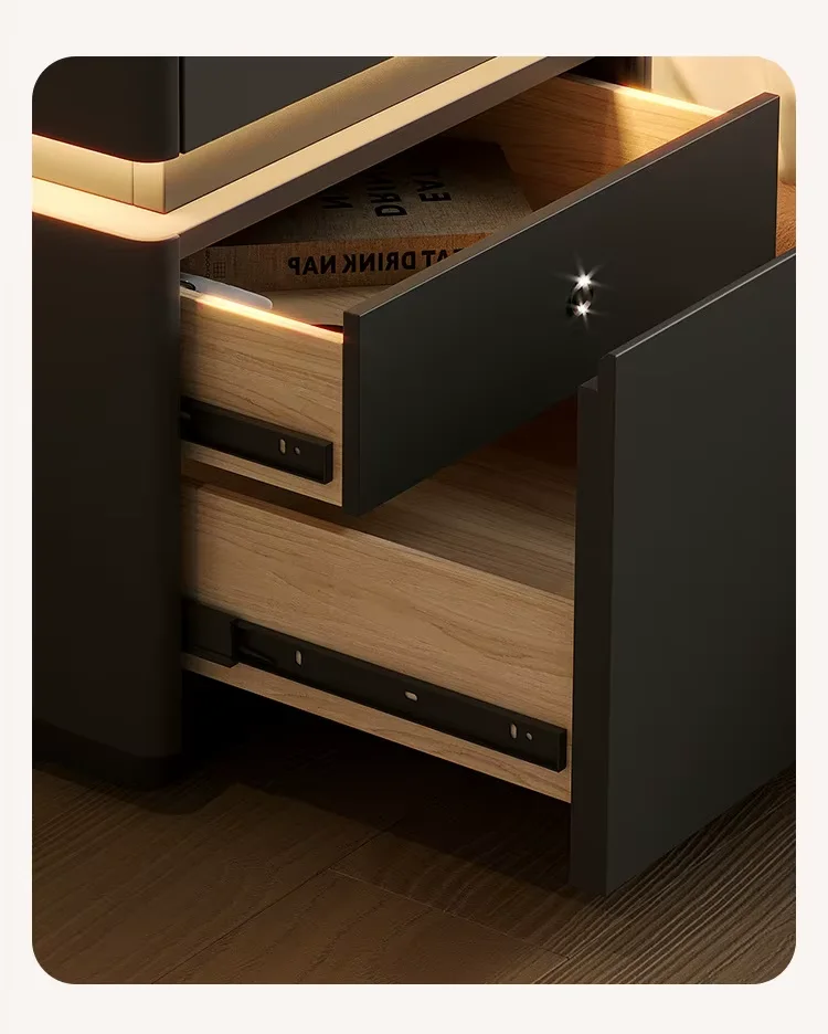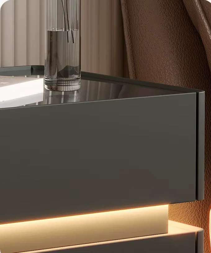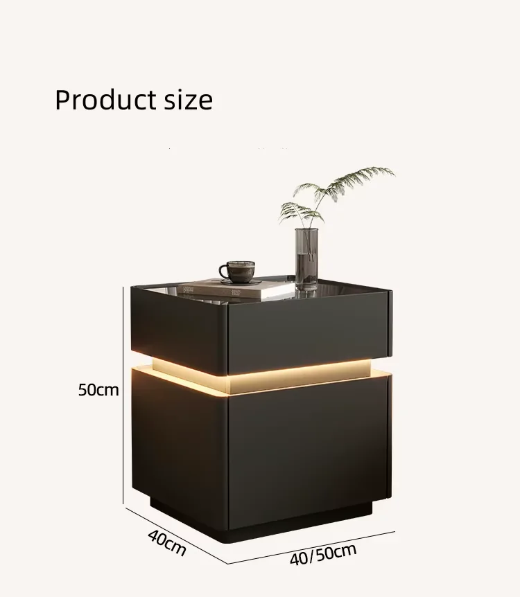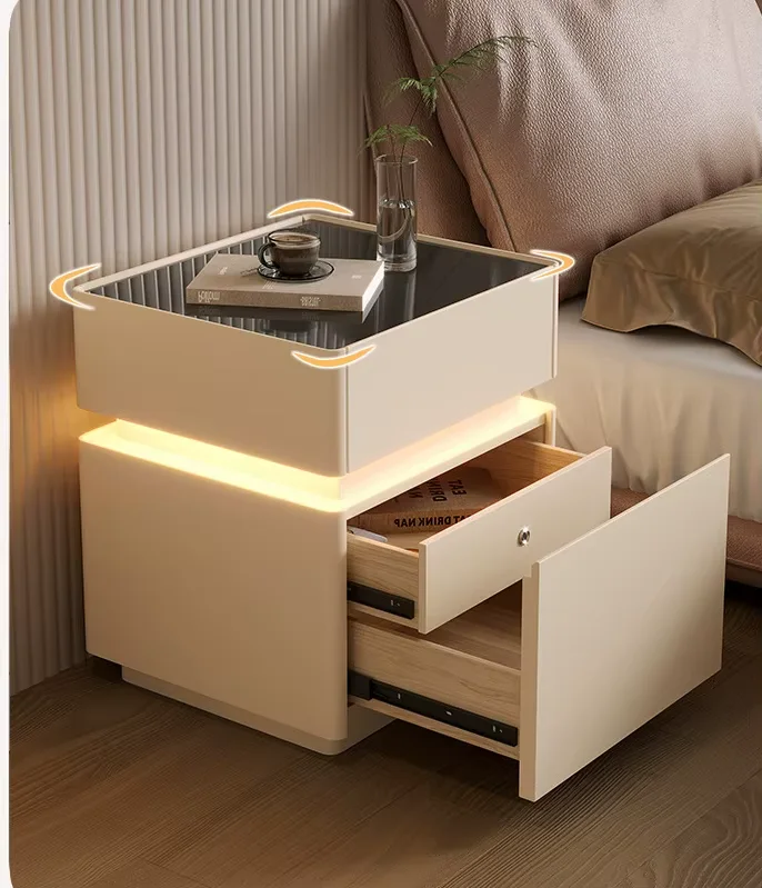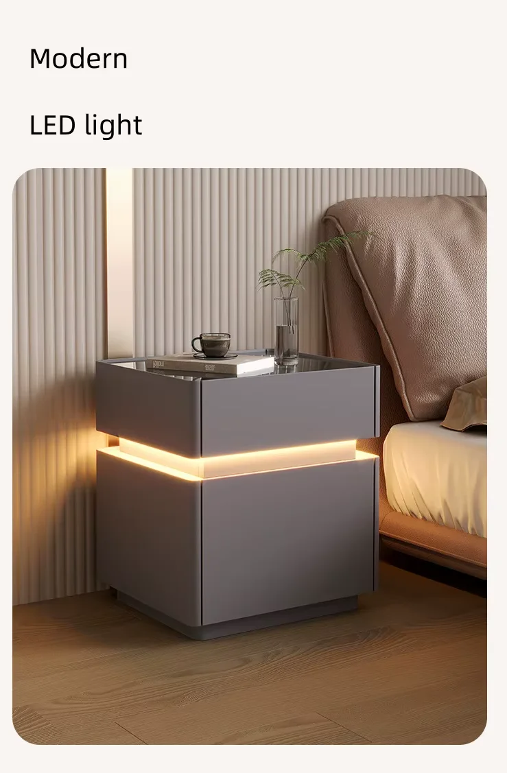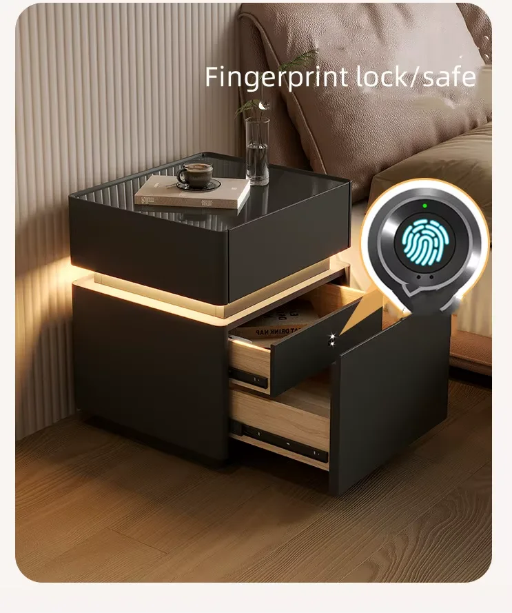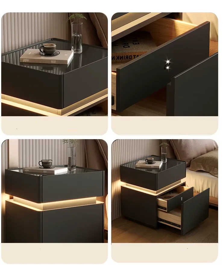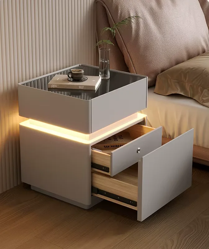 Smart Nightstands Luxury Bedroom Safe LED Light Nightstand Simple Wireless Charging USB Port Bedside Table for Bedroom Set