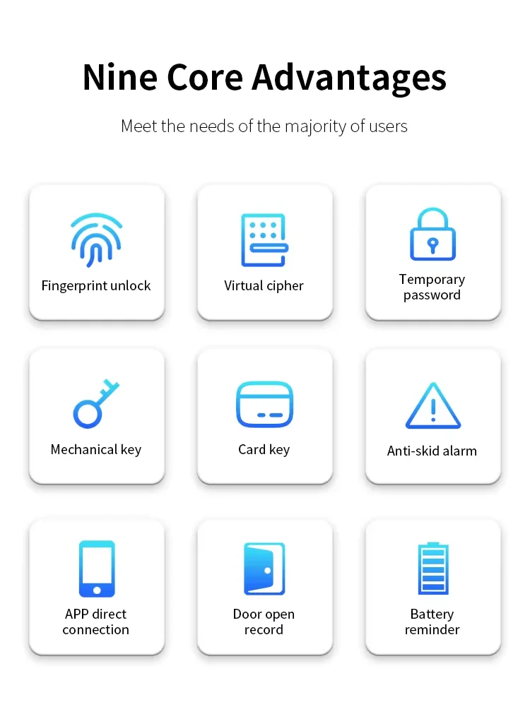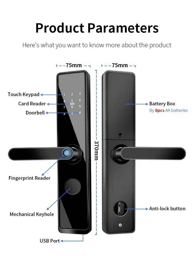 Power Supply | 4.5V-6.5V(Tuya 8pcs AA batteries / TTlock 4pcs AA batteries) |