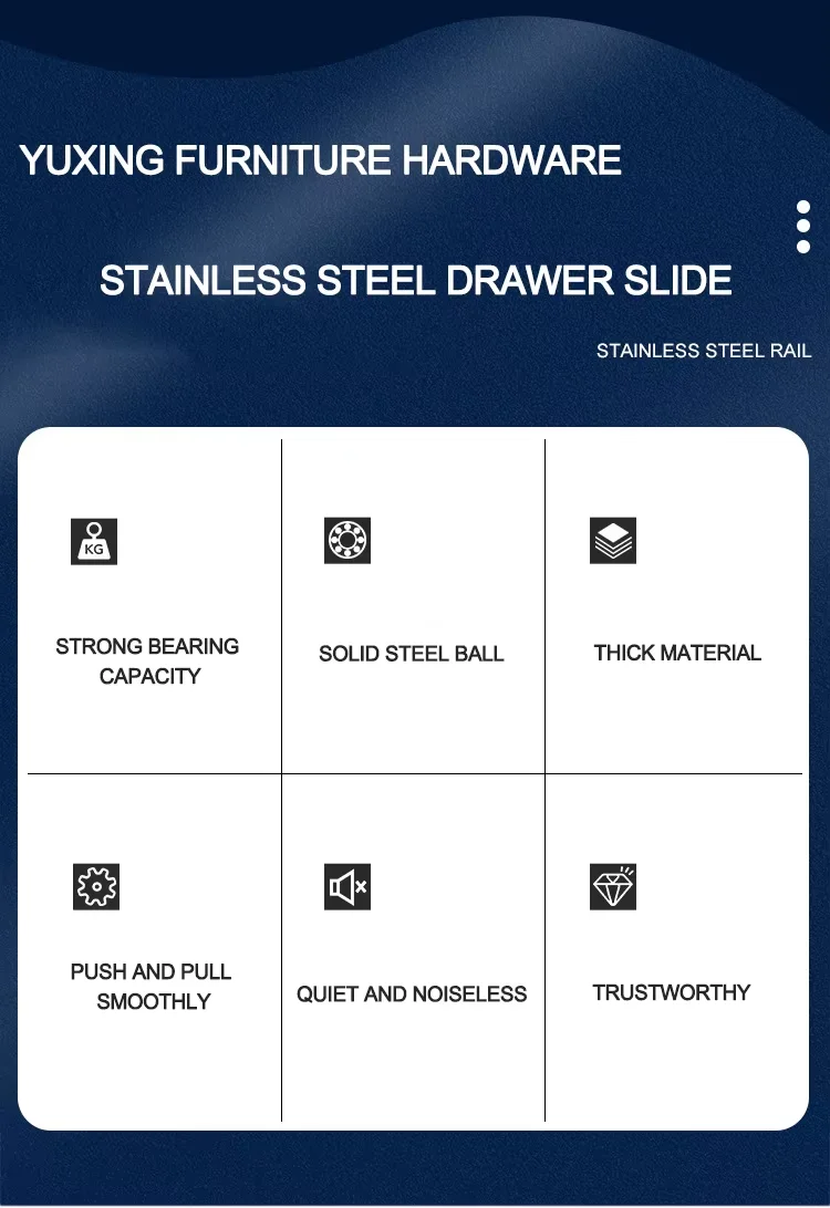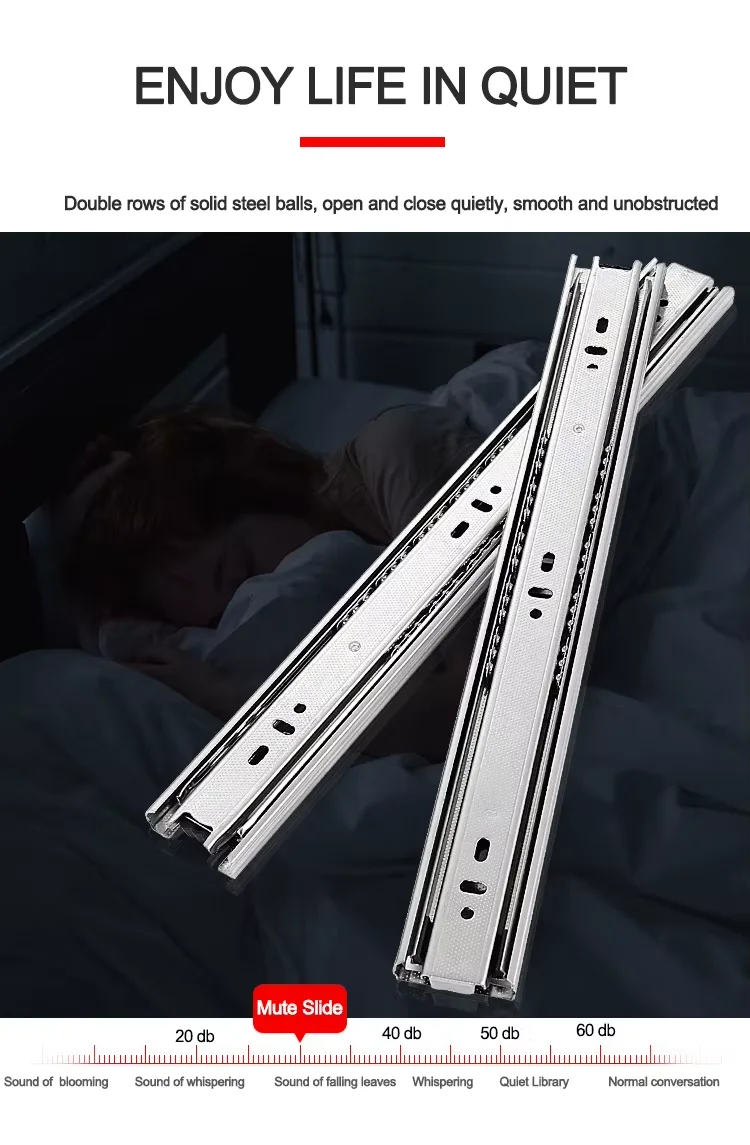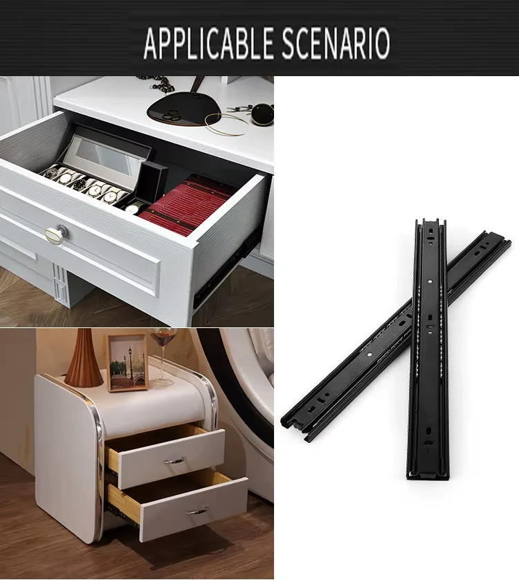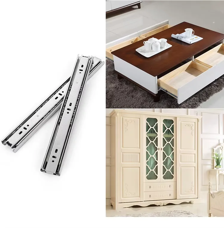 YUXING Furniture Sliders Push Open Full Extension 40mm Telescopic Channel Ball Bearing Drawer Slides