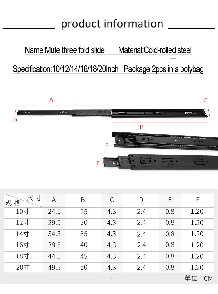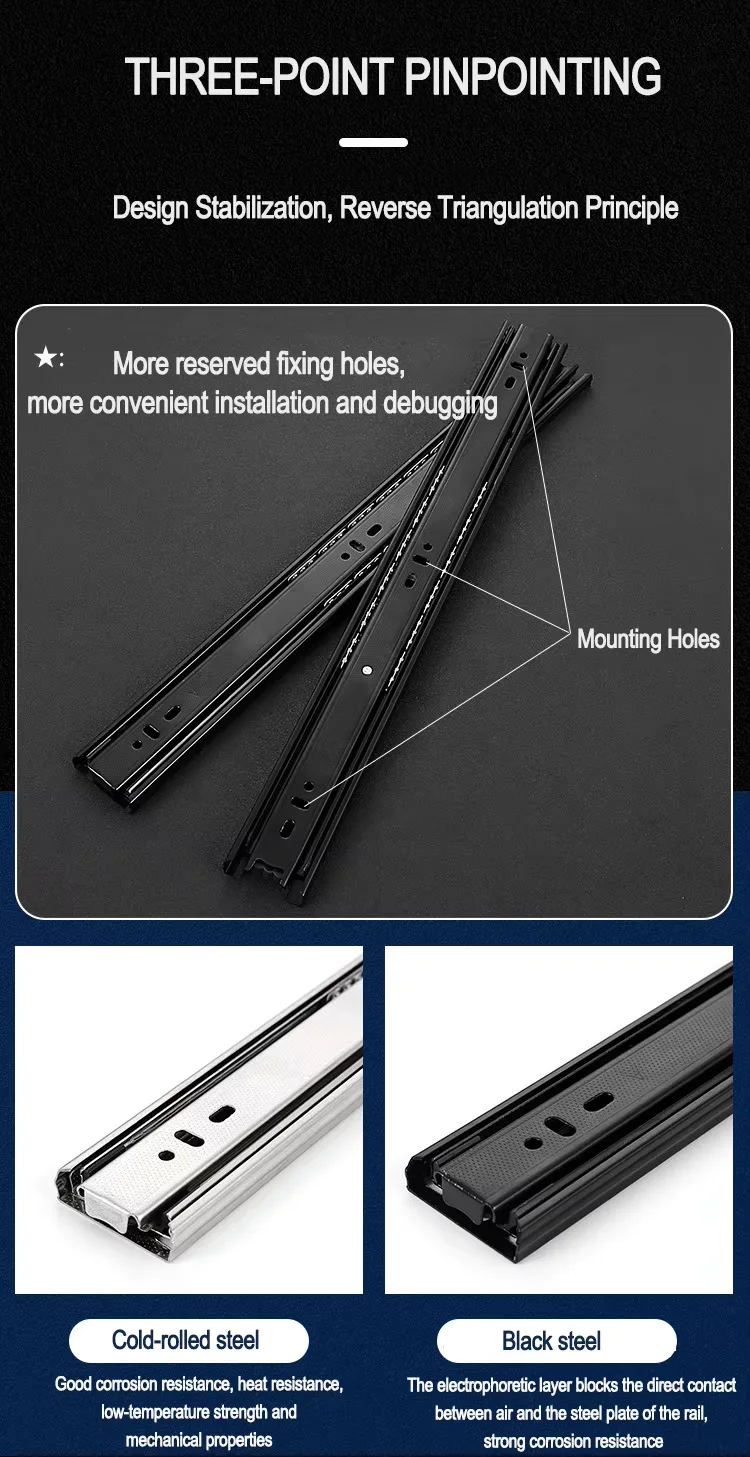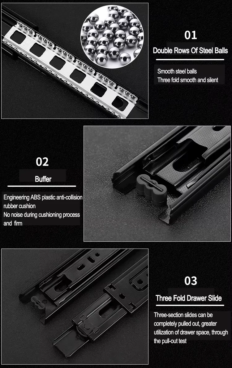YUXING 45mm Kitchen Furniture Slide Rail Telescopic Channel 3-Fold Full Extension Ball Bearing Cabinet Drawer Slide
